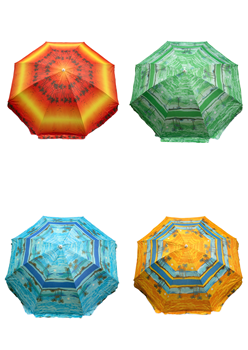 Зонт пляжный фольгированный (170 см в диаметре) 12шт/упак - надежное укрытие от солнечных лучей. Качественный металлический карскас с наклоном. Купол пляжного зонта выполнен из водонепроницаемого полиэстера, с внутренней стороны купол фольгирован, поэтому солнечные лучи отражаются. В раскрытом виде размер купола 1,7 метра. В ассортименте 4 расцветки